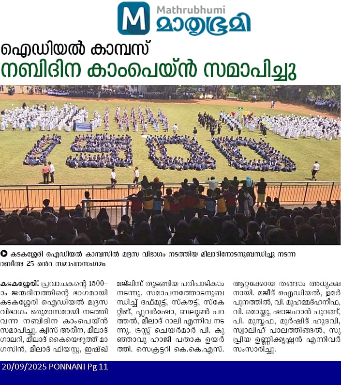 As part of the 1500th birth anniversary celebrations of Prophet Muhammad (PBUH), the Kadassery Ideal
