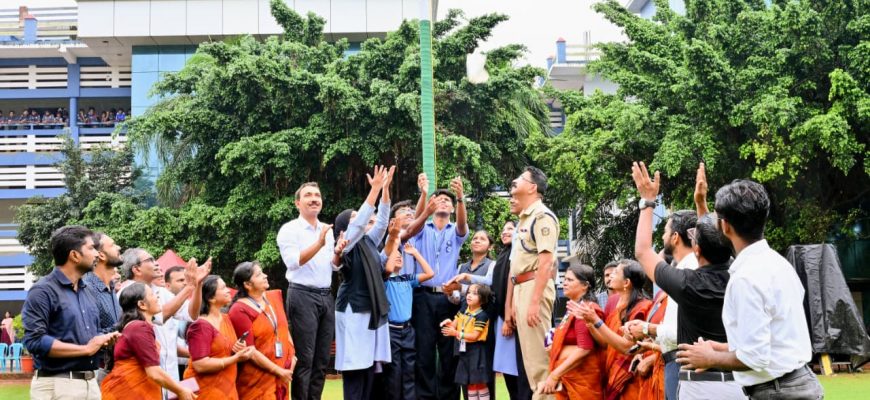The 79th Indian Independence Day was celebrated with grandeur at the Ideal Campus, Kadakassery. In spite of the drizzling rain, students and teachers enthusiastically participated in the programs till the end. At the function held on the school ground, Ideal Trust Chairman P. Kunhavu Haji hoisted the national flag. Student leaders from different sections together released white doves, symbolizing peace. The band display, Scouts & Guides, and SPC parades were conducted, with Sub-Inspector K. Giri of Kuttippuram Police Station receiving the salute. Ideal Trust Secretary K.K.S. Attakkoya Thangal delivered the keynote address, while Senior Principal F. Firoz conveyed the Independence Day message. Students from various sections presented patriotic songs, dances, Zumba, and other display programs, followed by the distribution of payasam (sweet pudding).The Ideal Trust officials honoring Subhadramma, a neighbour of the school and the chief guest of the Independence Day program. Founder Director Majeed Ideal, Higher Secondary Principal Senthil Kumaran, and P.P. Hussain also spoke on the occasion.