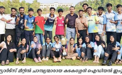 Thenhipalam: The District Central Schools Athletics Meet was held at the Calicut University Stadium. Ideal English School, Kadakassery won the Overall Championship with 350 points. A total of